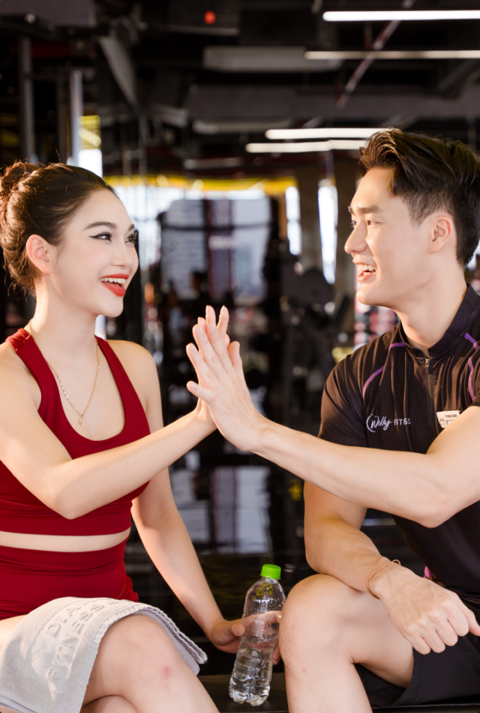 khách hàng tập luyện cùng hlv tại welly fitness